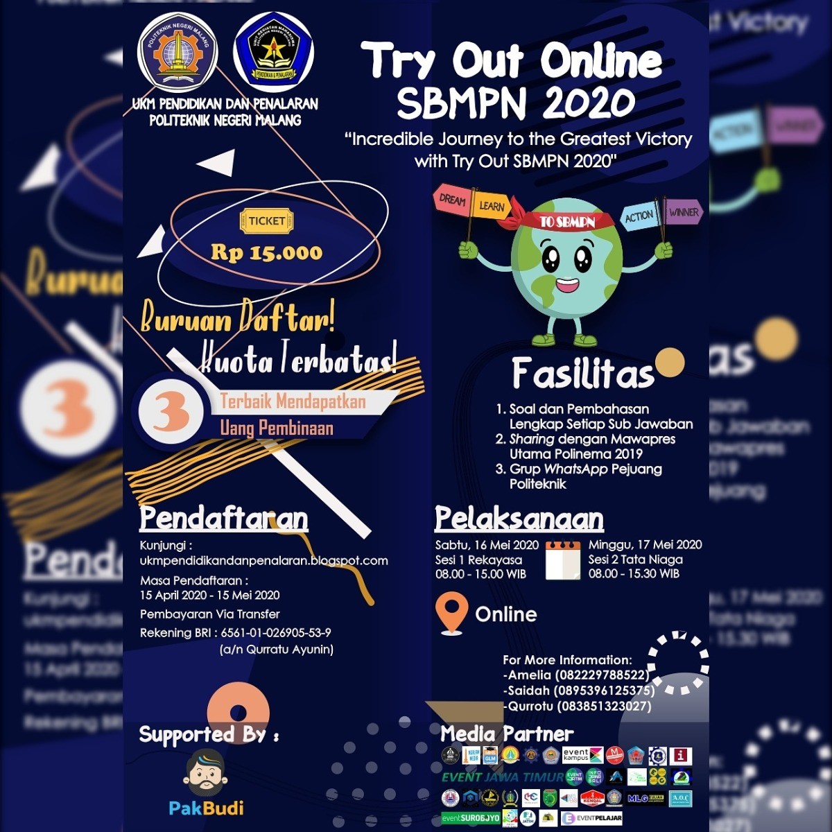Jadi, tunggu apa lagi? Sekarang saatnya take your action! Gunakan waktu kalian untuk tetap produktif dengan mengikuti Try Out Online SBMPN 2020!⁣