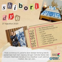Pada workshop ini, peserta akan belajar tentang teknik pewarnaan kain dari Jepang dengan metode ikatan dan celupan. Hasil kain tersebut bisa dijadikan scarf, selimut, masker, dan lain-lain.