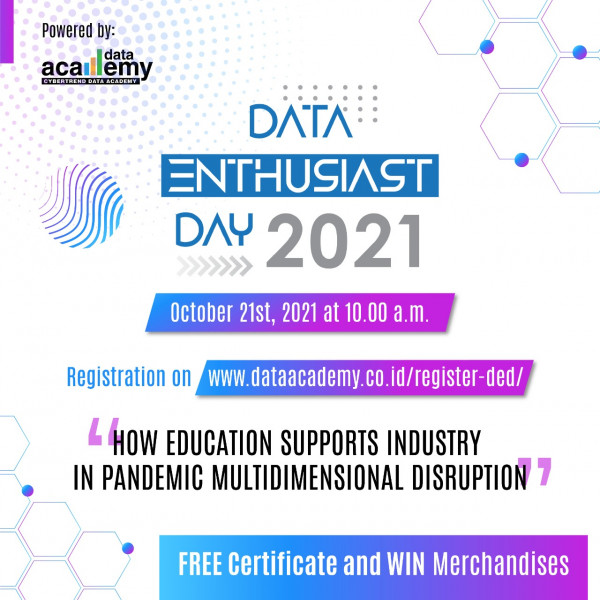 Data Enthusiasts Day 2021 kembali hadir dengan mengangkat tema "How Education Supports Industry in Pandemic Multidimensional Disruption" pada 21 Oktober 2021 live via Zoom.